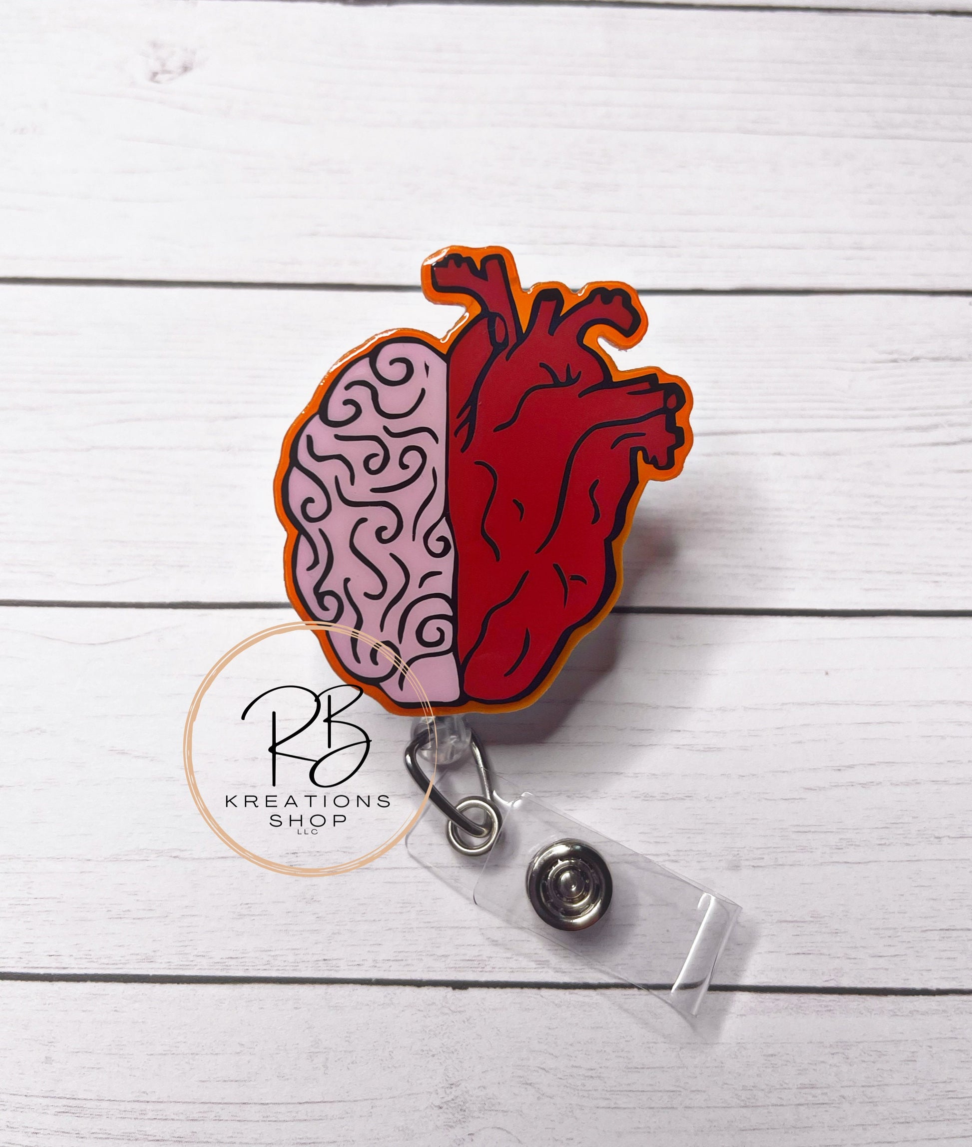 Brain/Heart Badge reel | Heart Brain | Medical Badge Reel | Neurology | Cardiology | Nurses | Retractable | Interchangeable | No glitter