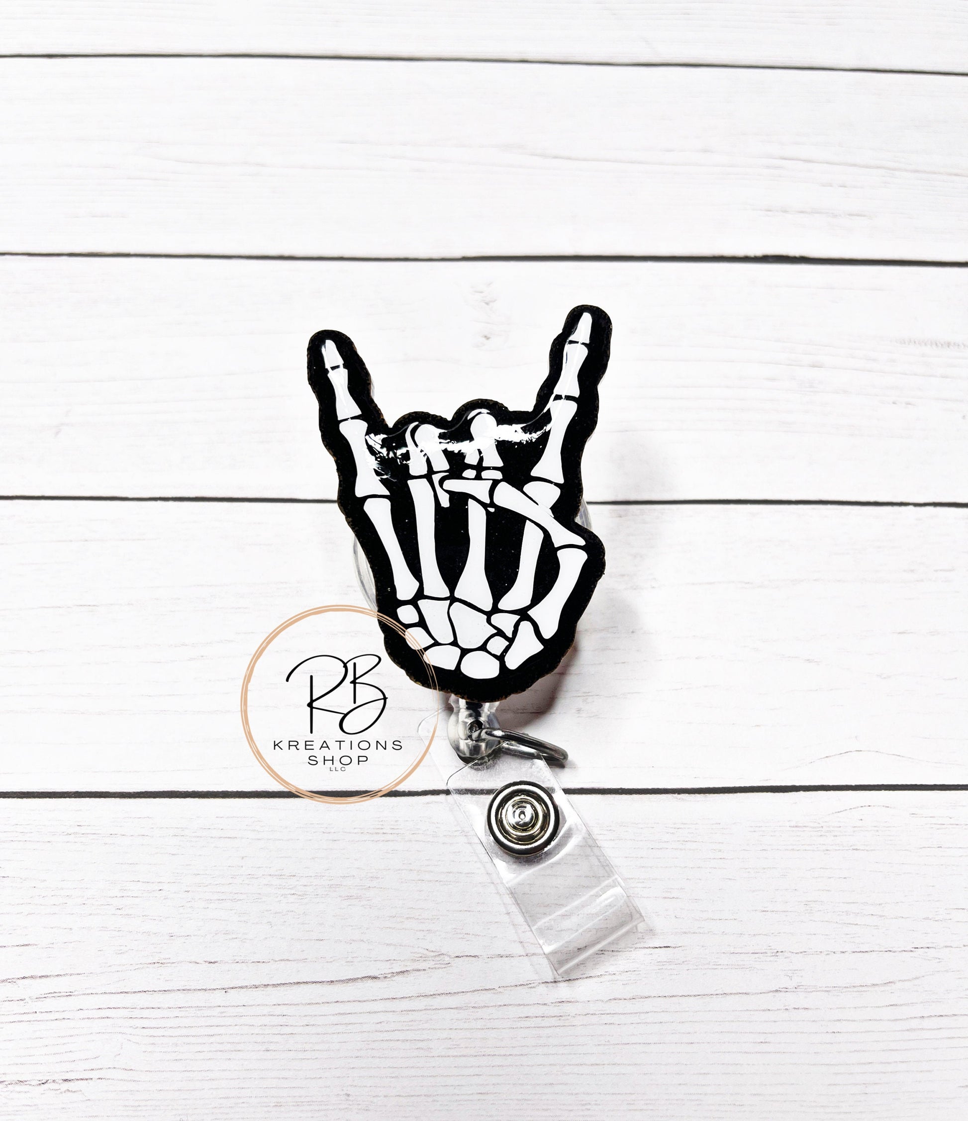 Rock On Badge holder | Skeleton hand badge reel | Retractable | Interchangeable
