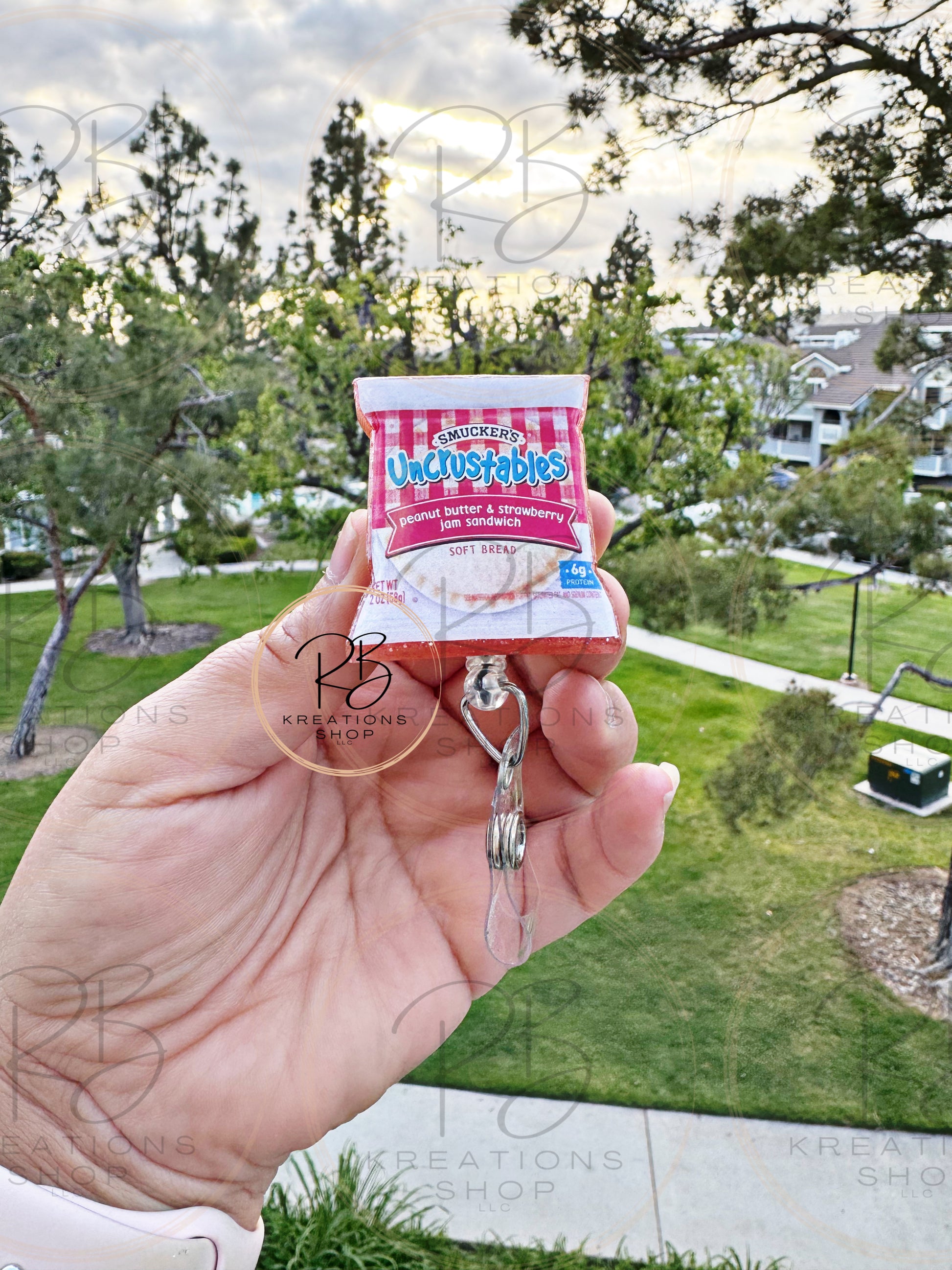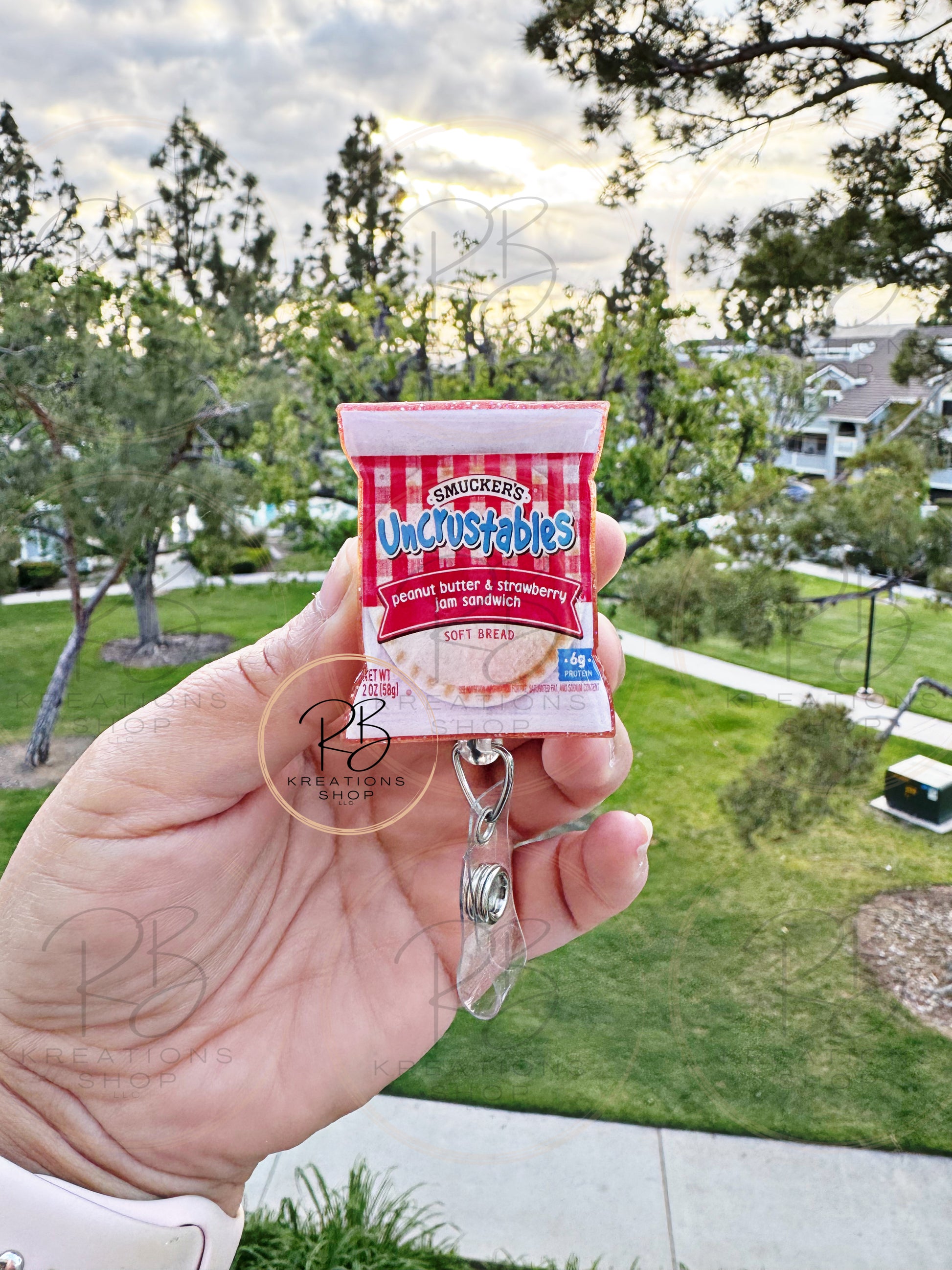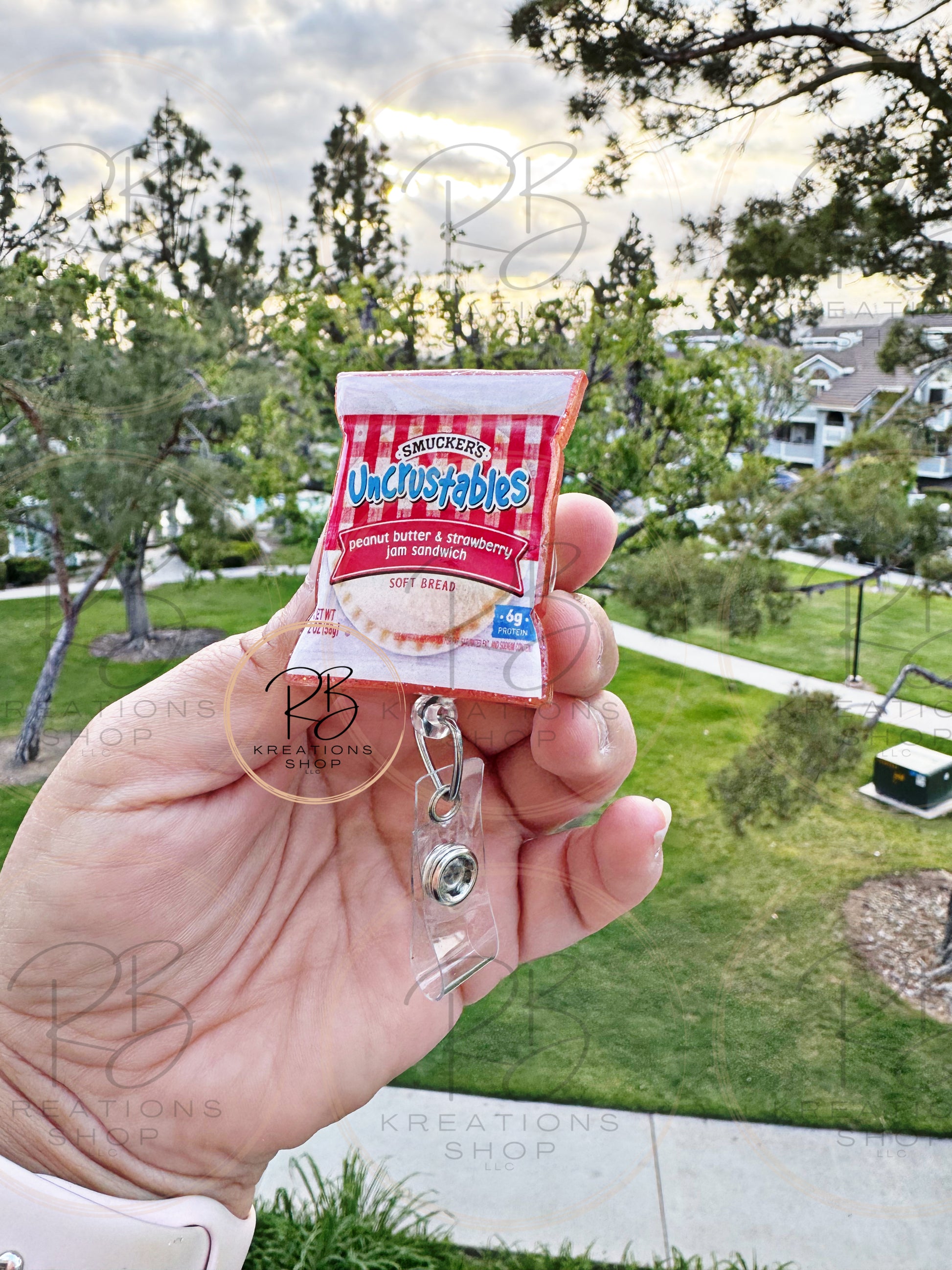 Strawberry PB Sandwich badge reel | PB Sandwich | Strawberry Jelly sandwich Badge holder | Retractable | Interchangeable |