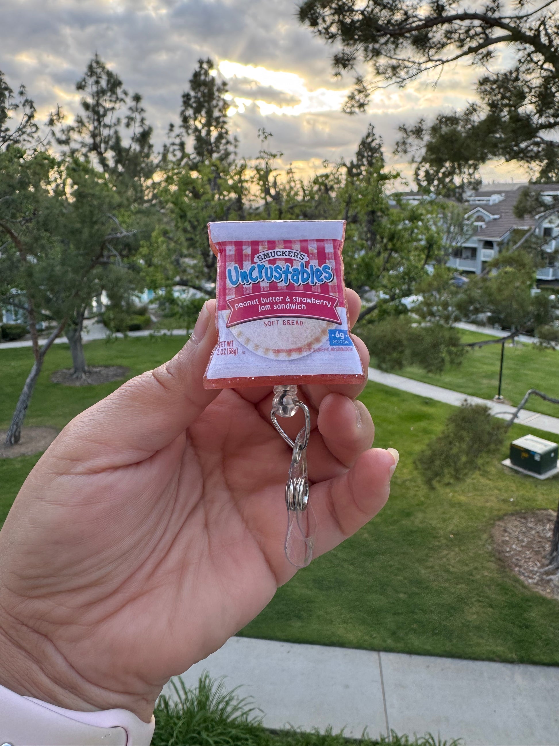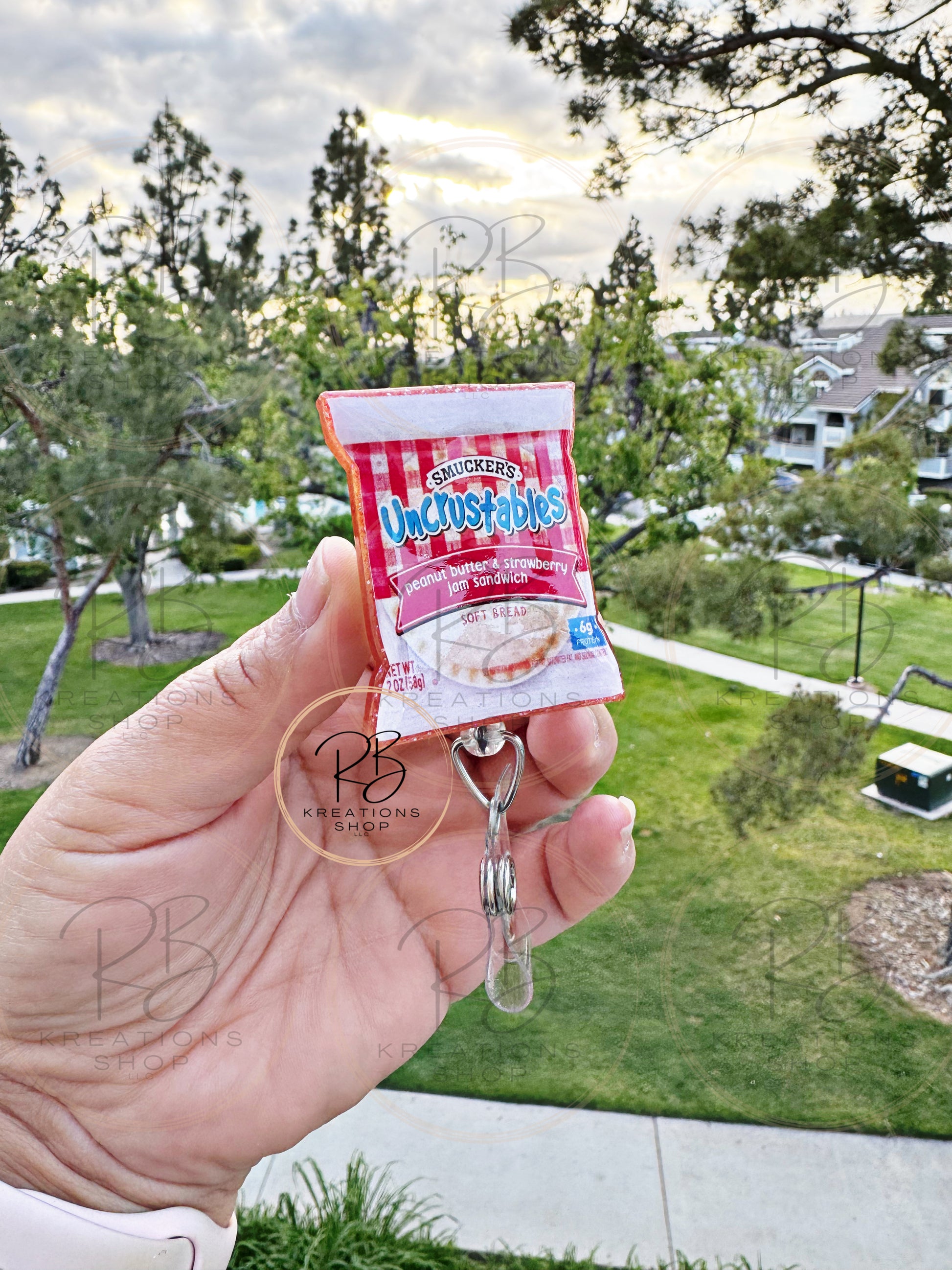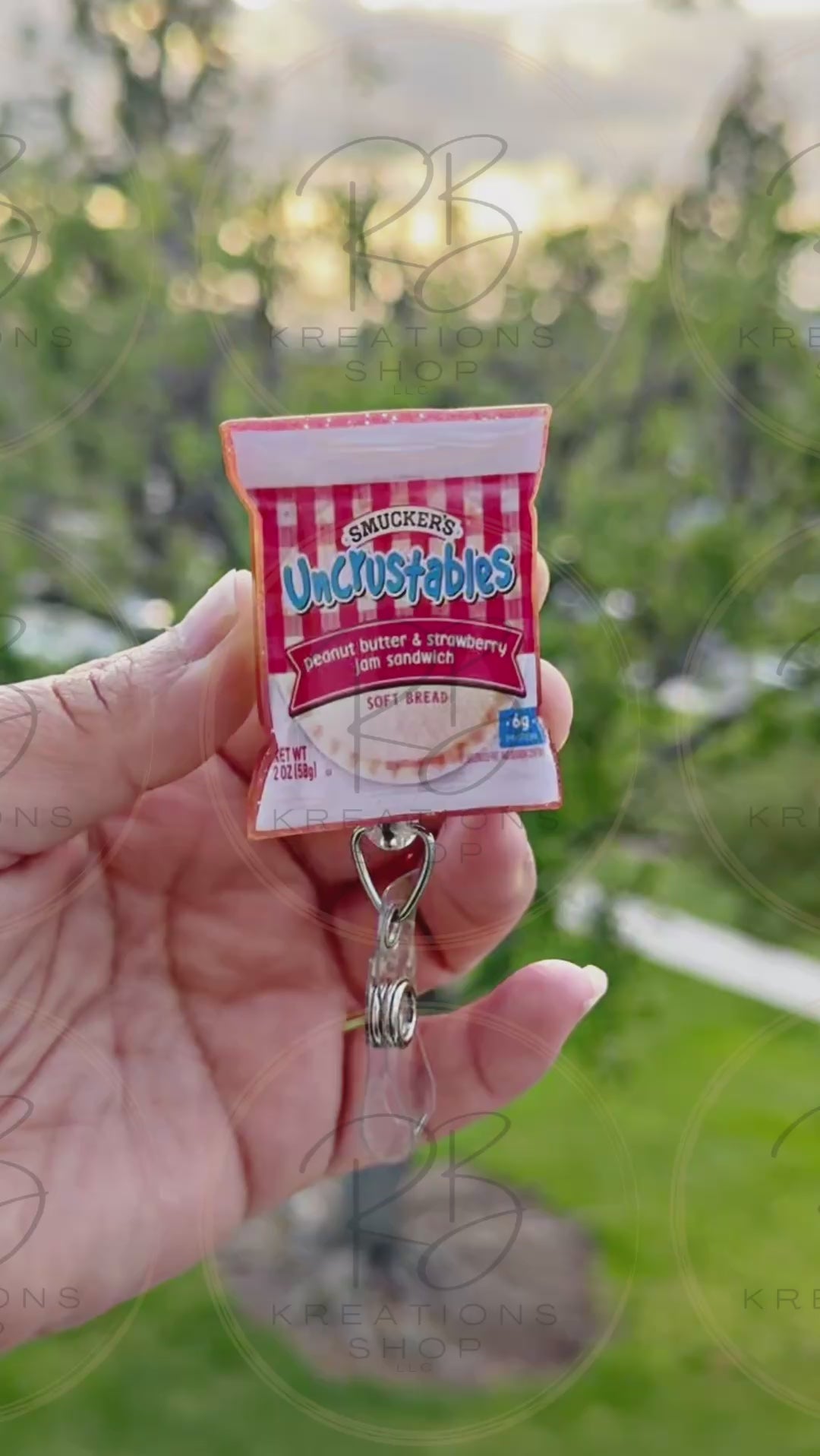 Strawberry PB Sandwich badge reel | PB Sandwich | Strawberry Jelly sandwich Badge holder | Retractable | Interchangeable |